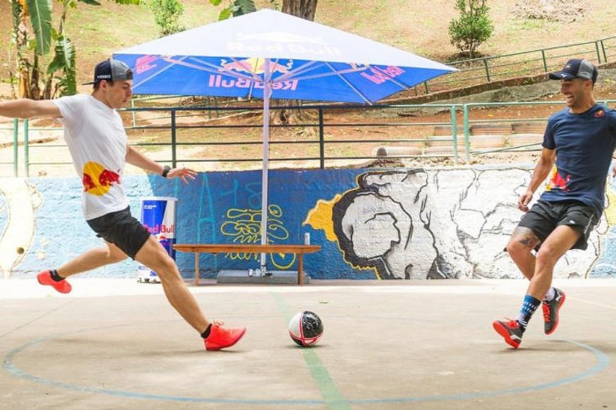 Normaal gesproken wordt 'futsal', in Nederland beter bekend als zaalvoetbal, niet in de open lucht gespeeld. Het is in Sao Paulo echter prima weer om gewoon buiten aan de slag te gaan, dus verschenen Max Verstappen en Daniel Ricciardo op een kleurrijk speelveldje nabij de Braziliaanse stad. Samen met een aantal ervaren spelers mochten de Formule 1-coureurs laten zien wat ze in huis hadden. Ricciardo was redelijk tevreden, maar merkte dat Verstappen vanwege zijn leeftijd iets feller was: "Ik denk dat ik puur met skills wel beter was dan Max, maar hij kan wel goed schieten. Dat is ook het enige wat hij kan, maar hij scoort wel en kan omdat hij jong is en meer energie heeft ook wel wat meer rennen. Hij was dus mogelijk wat beter tijdens het spel."