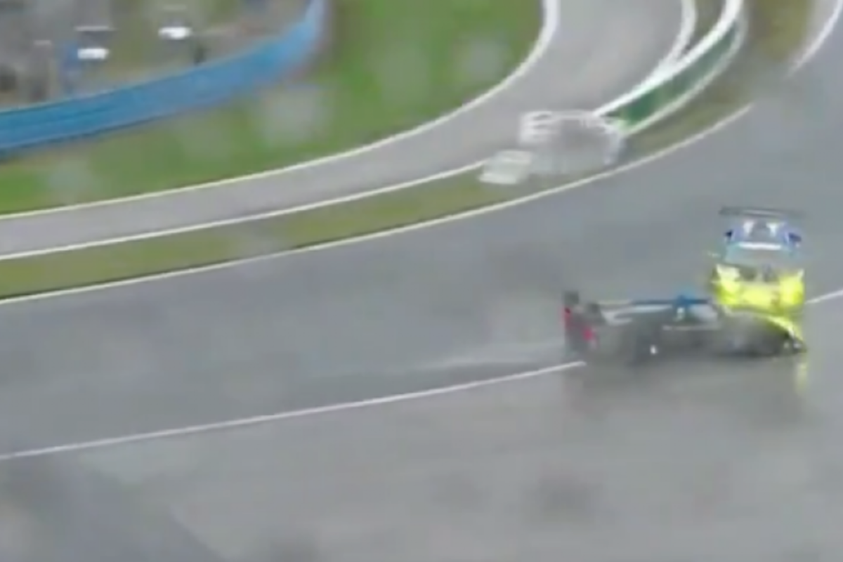 Het noodweer in Florida zorgt voor hachelijke situaties op de baan. De 24 uur van Daytona heeft daardoor even stilgelegen. Op onderstaande beelden zien we dat Fernando Alonso maar net een voorligger kan ontwijken.
