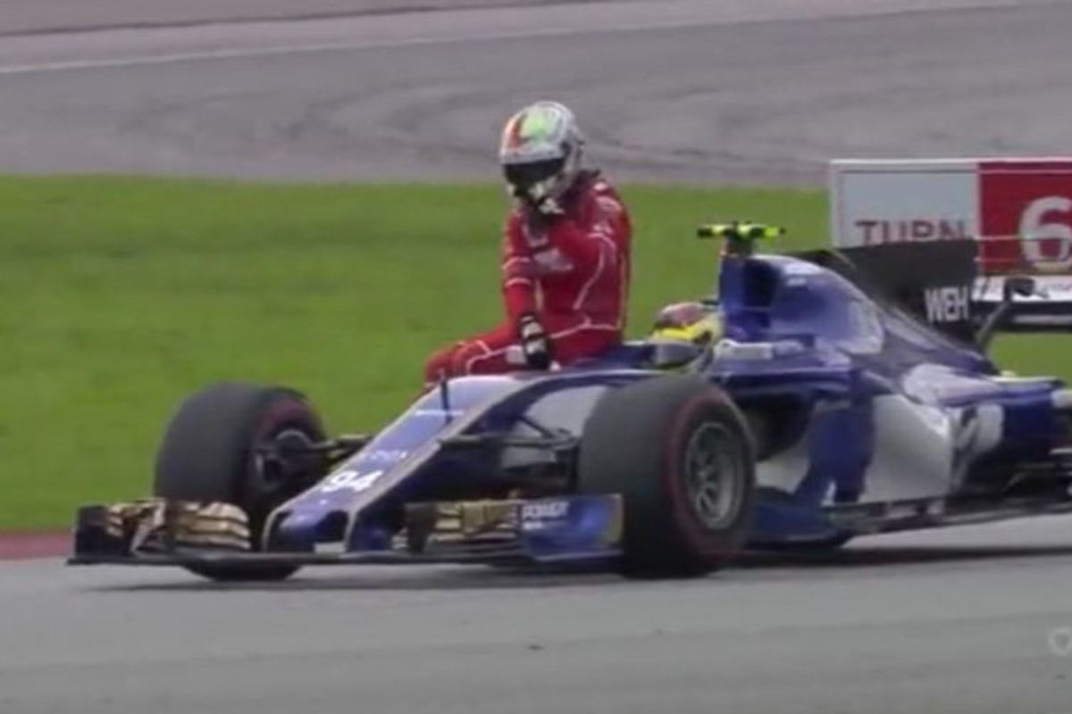 Tijdens afkoelronde na de Grand Prix van Maleisië kwam Sebastian Vettel in contact met Lance Stroll. Hierdoor raakte de auto van de Duitser dusdanig beschadigd dat hij uit moest stappen. Hij hoefde echter niet terug te lopen naar de pitstraat, want Sauber-coureur Pascal Wehrlein was zo galant om zijn landgenoot een lift terug te geven. Grappige beelden.