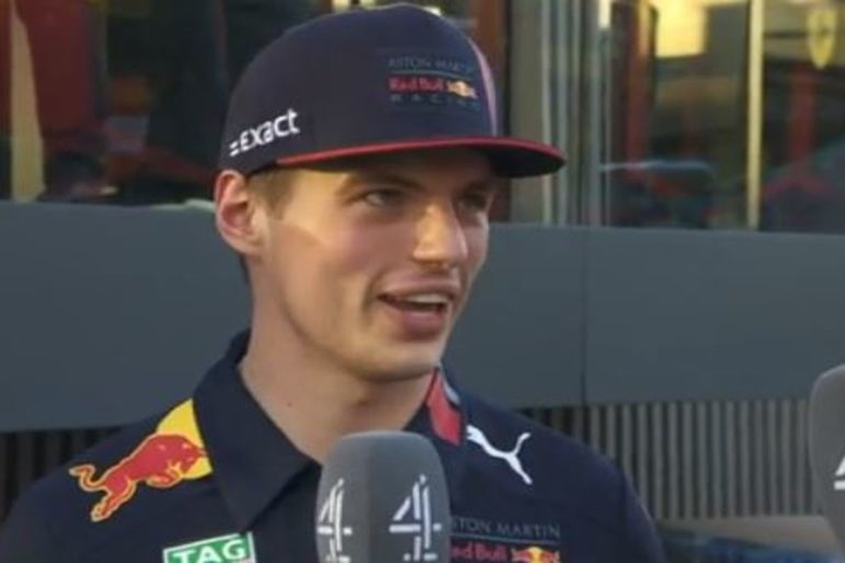 Verstappen lacht om fans die poster van hem in de lucht houden: "Niet aardig"