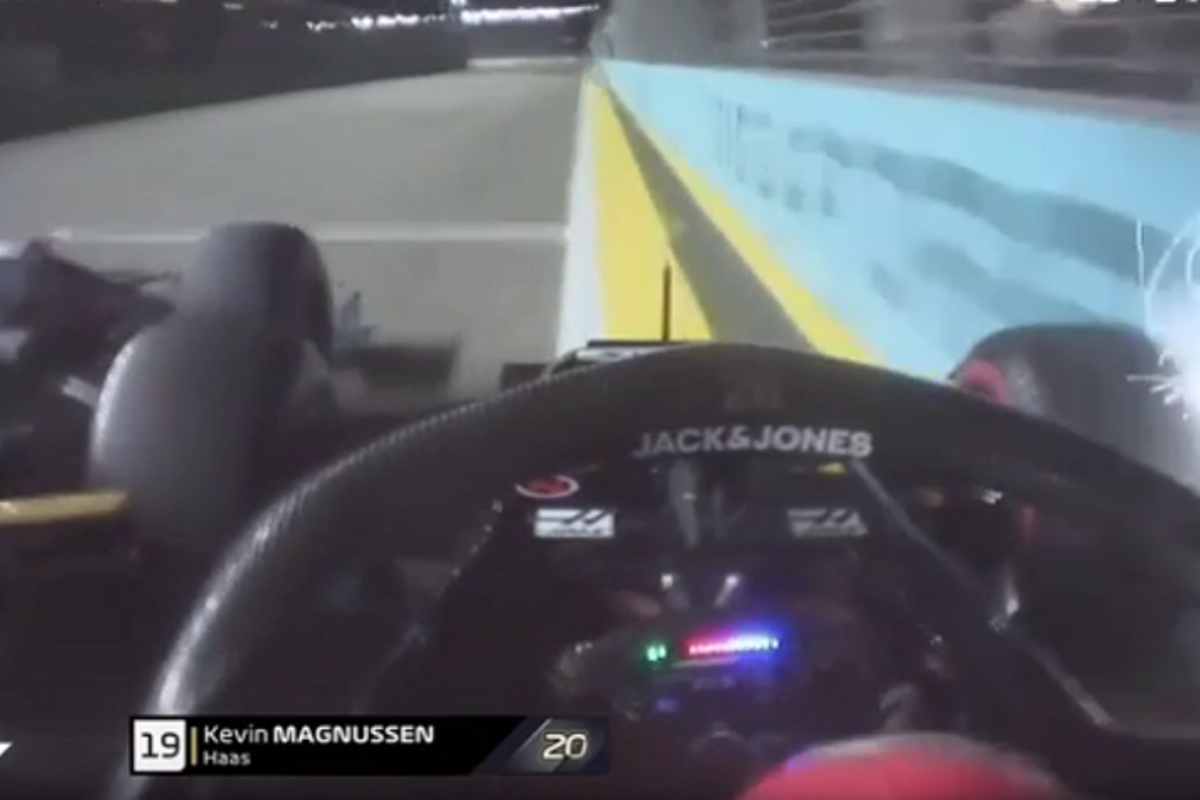 VIDEO: Magnussen wordt de muur ingedrukt door Pérez