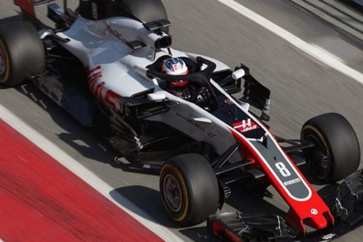 Blasting by on another lap at @Circuitcat_eng. @RGrosjean doing the business in the new #VF18.#FilmingDay #HaasF1 #F1 pic.twitter.com/p6vHRIN40I — Haas F1 Team (@HaasF1Team) 23 februari 2018