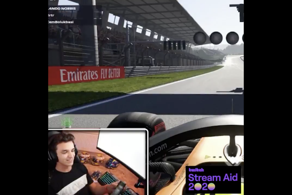 Vorige week deed Norris mee aan de Virtuele Grand Prix van Bahrein. Tijdens zowel de kwalificaties als de race liep de game van Norris even vast, waardoor hij niet meer mee kon doen met de sessies. Uiteindelijk moest de LandoBot het zelfs even van hem over nemen. Gisteren was Norris wederom actief op Twitch, waar hij meedeed aan Twitch Stream Aid, een virtueel evenement waarvan alle inkomsten naar het goede doel gaan. Echter liet Norris' zijn game hem wederom in de steek, wat voor de onderstaande hilarische beelden zorgde.