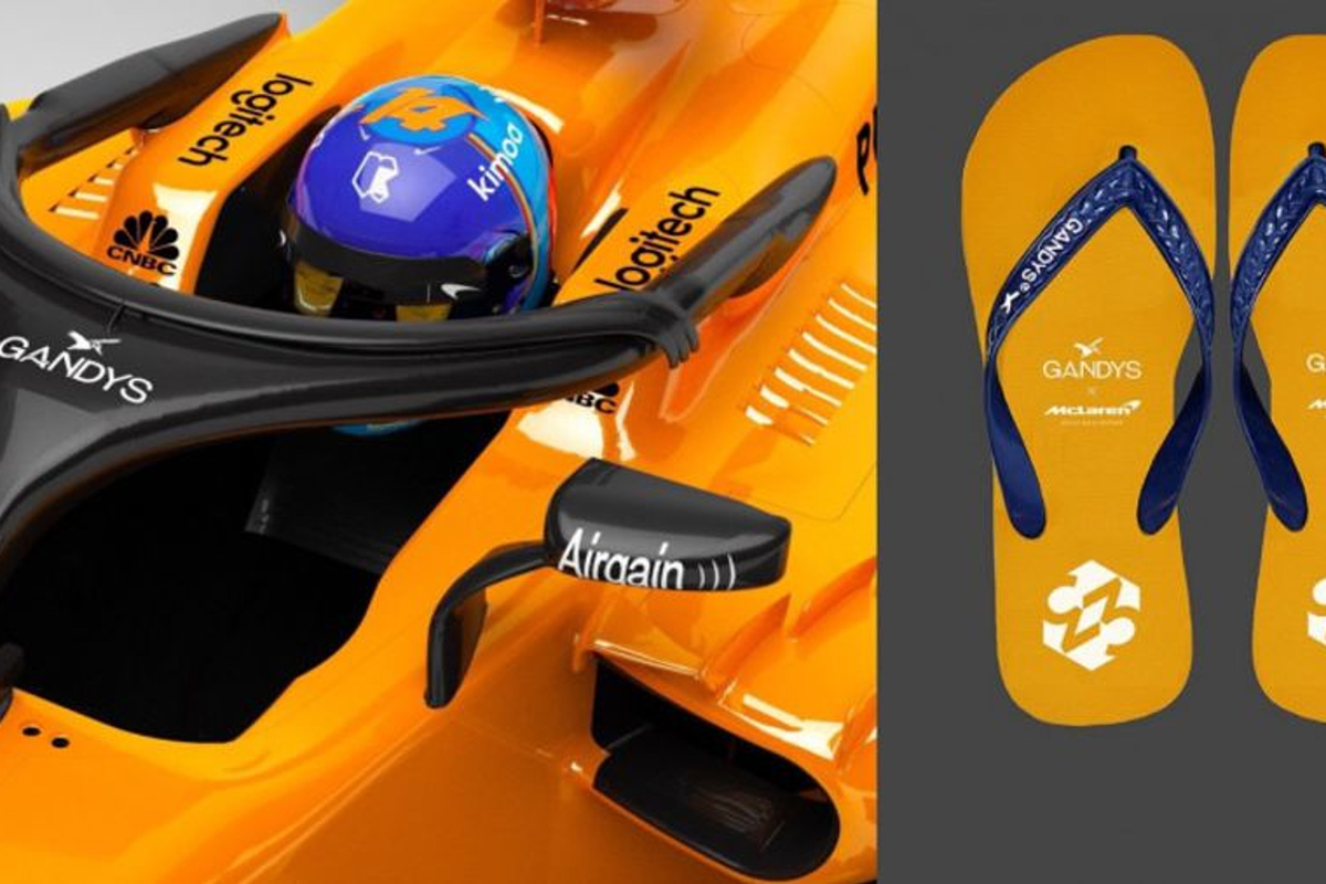 Hello, halo. When #F1 inspiration strikes for a great cause. McLaren goes feet first in our flip-flop collaboration with @GandysLondon: https://t.co/dX4uUIlIvp #HaloEdition pic.twitter.com/4MMMHTiidS — McLaren (@McLarenF1) 16 maart 2018