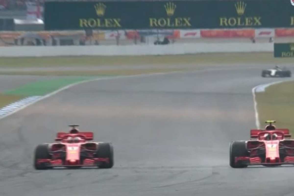 Kimi Räikkönen lag aan de leiding, maar Sebastian Vettel was sneller. Het gevolg: teamorders bij Ferrari!